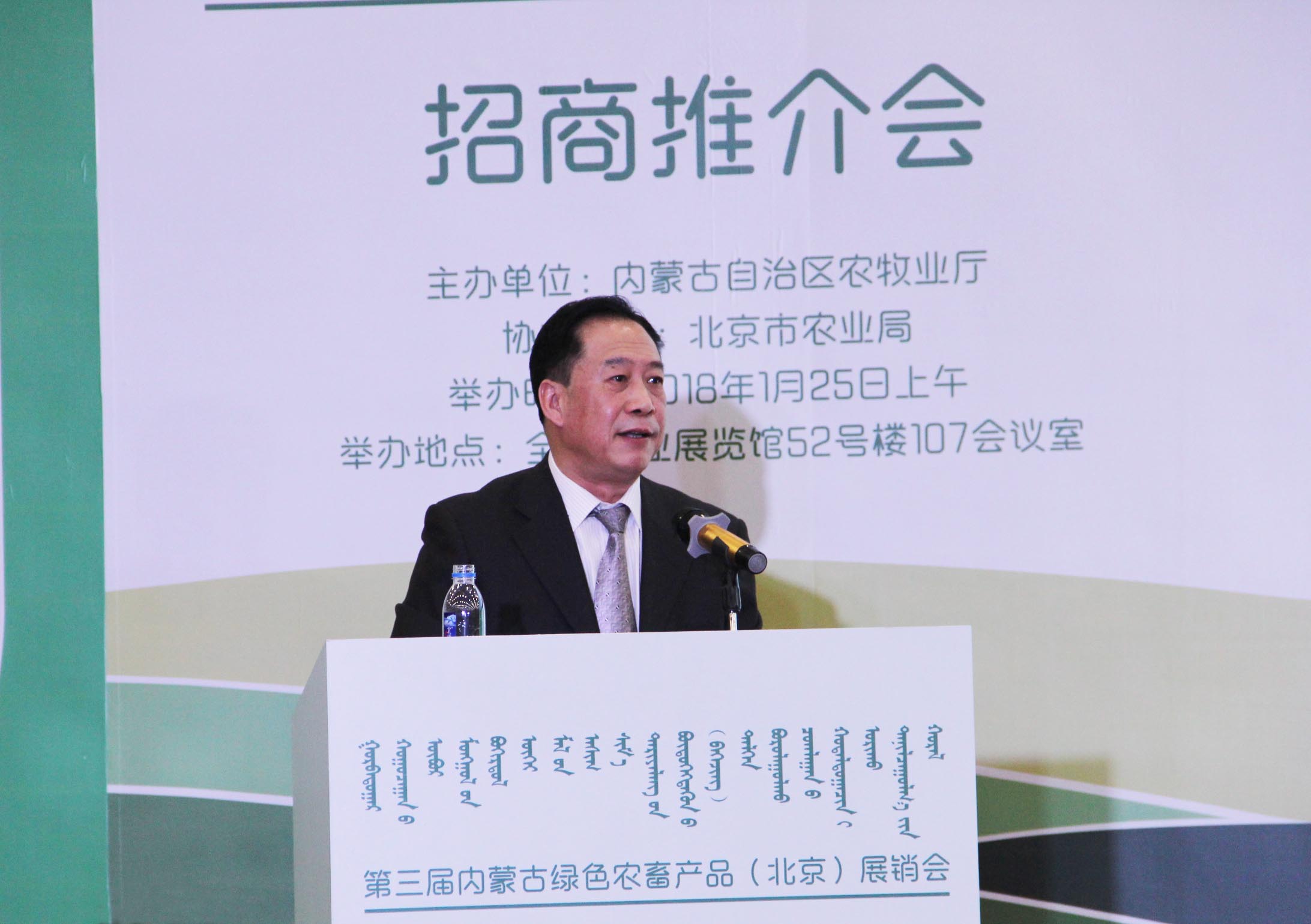為進(jìn)一步提升內蒙古優(yōu)質(zhì)綠色農畜產(chǎn)品在北京市場(chǎng)的競爭力和占有率,讓更多的北京市民能夠在當地買(mǎi)到來(lái)自大草原的綠色無(wú)公害農畜產(chǎn)品,2018125日至28日,由內蒙古自治區農牧業(yè)廳主辦、北京市農業(yè)局協(xié)辦的第三屆內蒙古綠色農畜產(chǎn)品(北京)展銷(xiāo)會(huì ),在北京市全國農業(yè)展覽館1號館隆重開(kāi)幕,內蒙古農牧業(yè)廳黨組書(shū)記孫振云出席開(kāi)幕式并致開(kāi)幕詞,副廳長(cháng)云挨厚主持開(kāi)幕式。