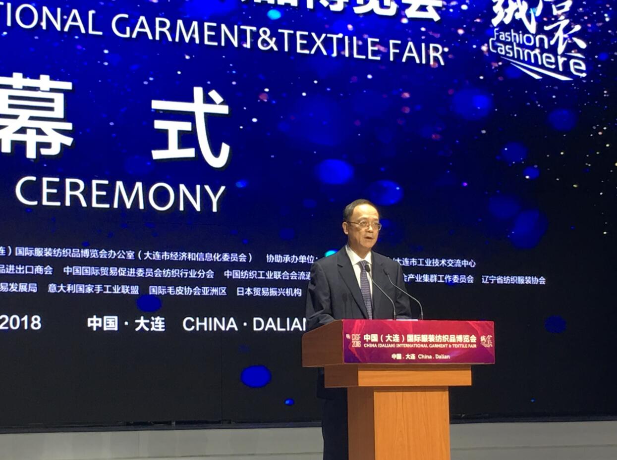 國家商務(wù)部副部長(cháng)王炳南、全國人大農業(yè)與農村委員會(huì )副主任委員李春生、國家工信部消費品工業(yè)司副司長(cháng)曹學(xué)軍、商務(wù)部住大連特派員高尚德、商務(wù)部外貿發(fā)展局副局長(cháng)賈國勇及有關(guān)行業(yè)協(xié)會(huì )負責人、遼寧省和大連市領(lǐng)導及國際嘉賓等出席開(kāi)幕式。內蒙古農牧業(yè)產(chǎn)業(yè)化龍頭企業(yè)協(xié)會(huì )執行會(huì )長(cháng)林永亮、協(xié)會(huì )副會(huì )長(cháng)—內蒙古鹿王羊絨制品有限公司董事長(cháng)鄭浩生、維信(內蒙古)羊絨集團有限公司總經(jīng)理郝佳林、內蒙古大盛業(yè)羊絨制品有限公司總經(jīng)理魯耀武應邀出席開(kāi)幕式。