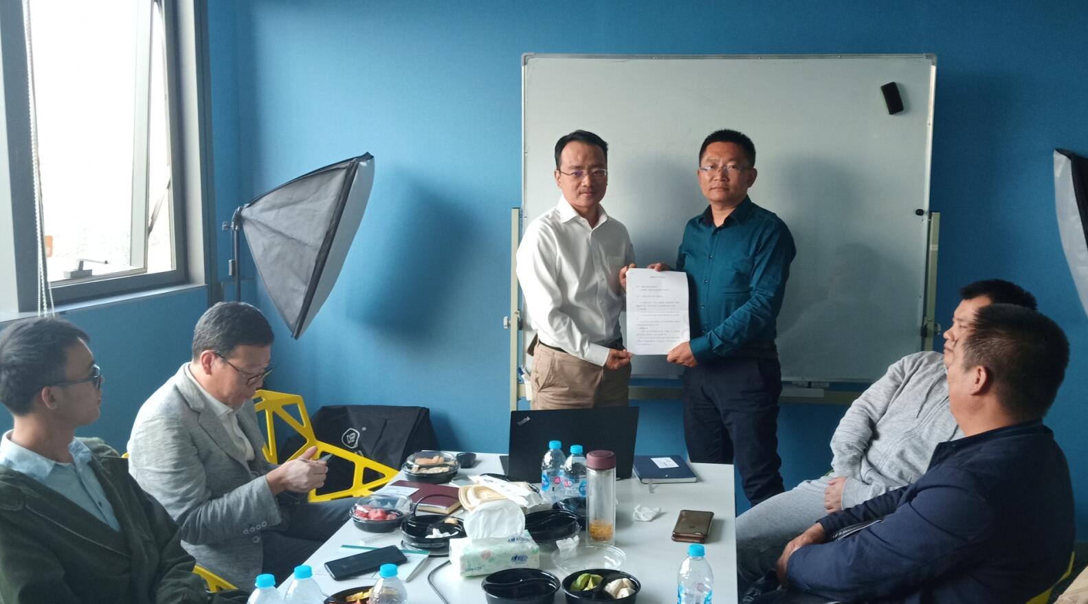 內蒙古農牧業(yè)電商創(chuàng )業(yè)園郝國文副主任與云樹(shù)電商負責人寇飛簽署戰略合作協(xié)議