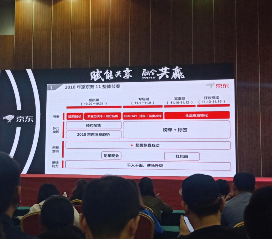 927日參加京東雙十一商家大會(huì ),學(xué)習了解京東集團為雙十一做的預熱準備,包括大數據分析、站內站外精準廣告投放引流、物流支持等多方位保障。