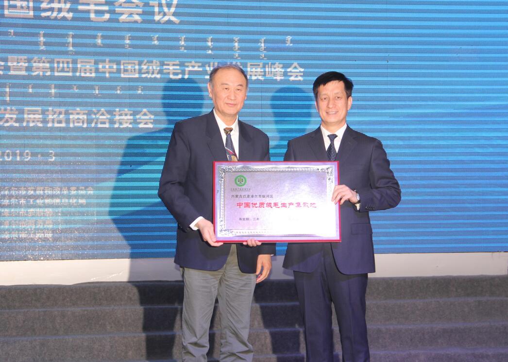 由中國畜產(chǎn)品流通協(xié)會(huì )授予臨河區“中國優(yōu)質(zhì)絨毛生產(chǎn)集散地牌匾”