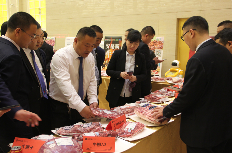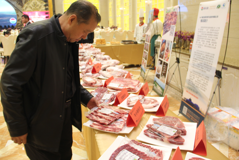 活動(dòng)開(kāi)始前,現場(chǎng)看到展臺上匯集了琳瑯滿(mǎn)目的各種錫盟牛羊肉產(chǎn)品,羊排、牛排、后腱、花腱切片、眼肉牛扒以及各種牛羊肉食品,引得眾多現場(chǎng)嘉賓駐足咨詢(xún)了解產(chǎn)品。
