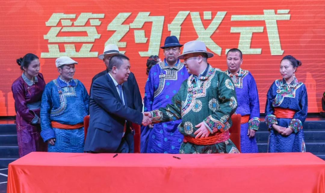 內蒙古額爾敦羊業(yè)股份有限公司董事長(cháng)額爾敦木圖與牧民代表簽約