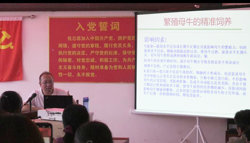 劉博士主要針對農牧民牛羊品種選育,雜交改良,羔羊哺乳階段飼養,斷奶后管理,當地玉米和青貯資源的利用方式,母牛飼養管理和犢牛定向培育等方面給予了指導和交流。還有國內外育種繁殖的最新技術(shù)和方法,應用情況等進(jìn)行講解,并強調精準飼養管理是關(guān)鍵,用通俗易懂的講解方式讓養殖戶(hù)聽(tīng)得懂學(xué)得會(huì )。