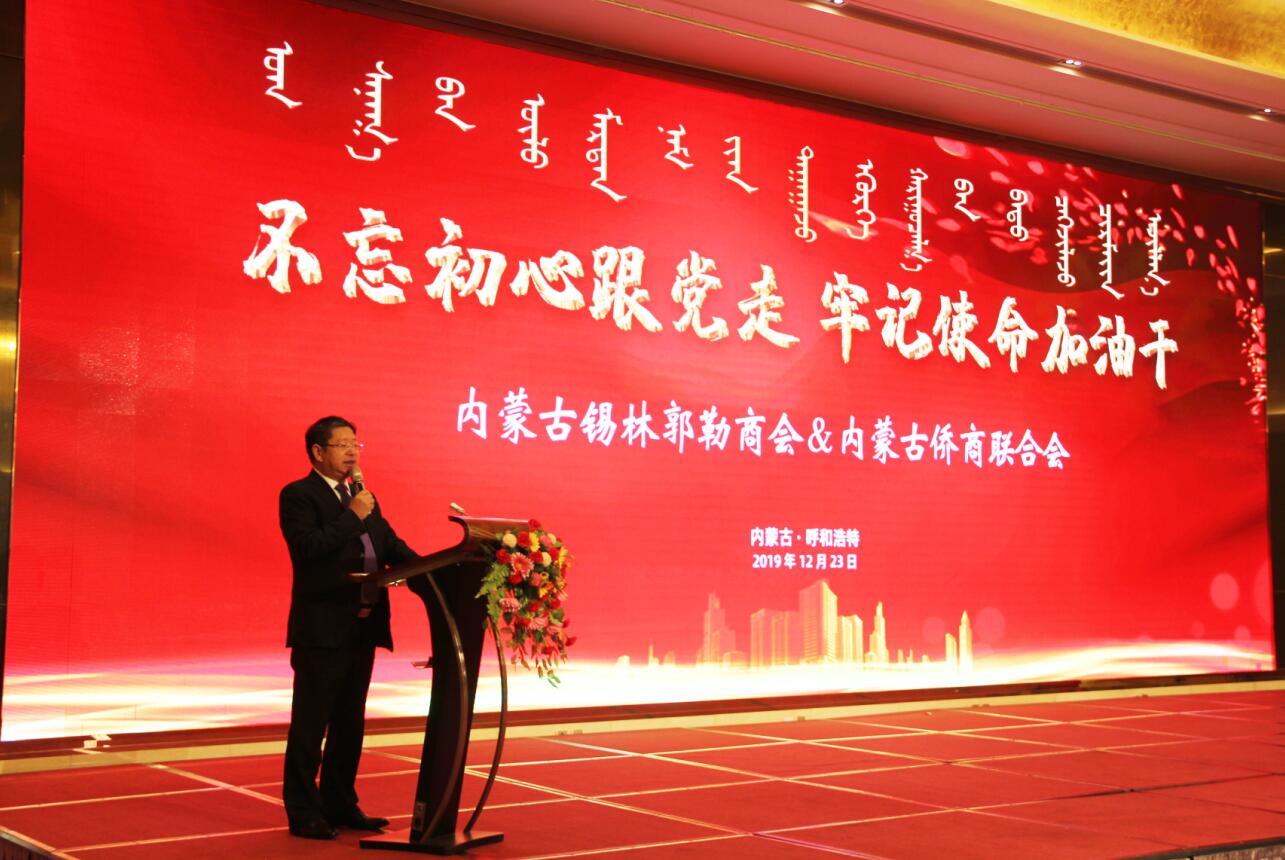 12月23日下午,以“不忘初心跟黨走,牢記使命加油干”為主題的“內蒙古錫林郭勒商會(huì )第二屆第四次會(huì )員大會(huì )暨2019年年會(huì )”在呼和浩特舉行。來(lái)自?xún)让晒佩a林郭勒商會(huì )、內蒙古僑商聯(lián)合會(huì )及各友好商會(huì )的會(huì )員企業(yè)代表、知名社會(huì )人士等出席了此次會(huì )議。內蒙古農牧業(yè)產(chǎn)業(yè)化龍頭企業(yè)協(xié)會(huì )會(huì )長(cháng)周勇、副秘書(shū)長(cháng)呼群應邀出席。
