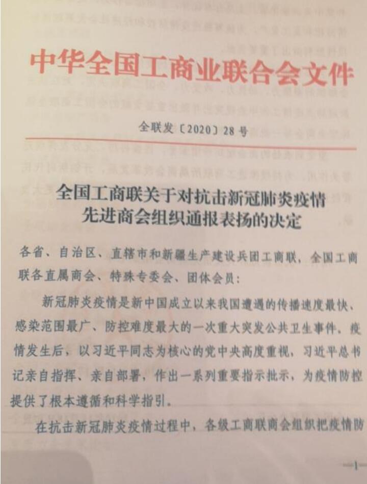 標題:“抗擊新冠肺炎疫情先進(jìn)商會(huì )” 既是榮譽(yù),也是前行的動(dòng)力