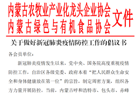 標題:眾志成城,抗擊疫情—內蒙古農牧業(yè)產(chǎn)業(yè)化龍頭企業(yè)協(xié)會(huì )在行動(dòng)