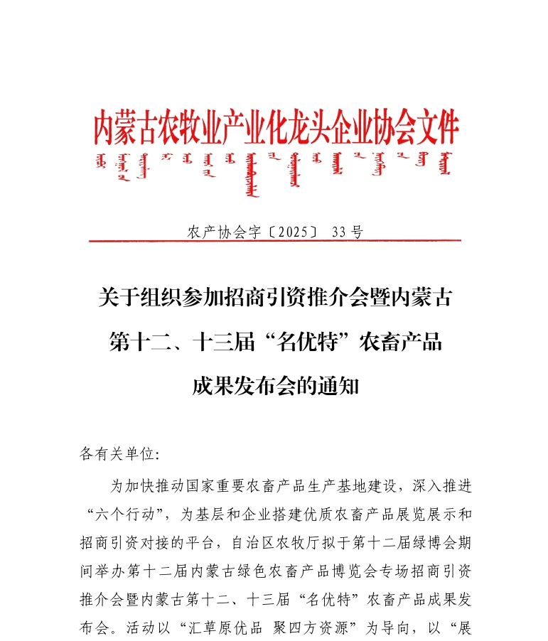 16  關(guān)于召開(kāi)內蒙古農牧業(yè)產(chǎn)業(yè)化龍頭企...