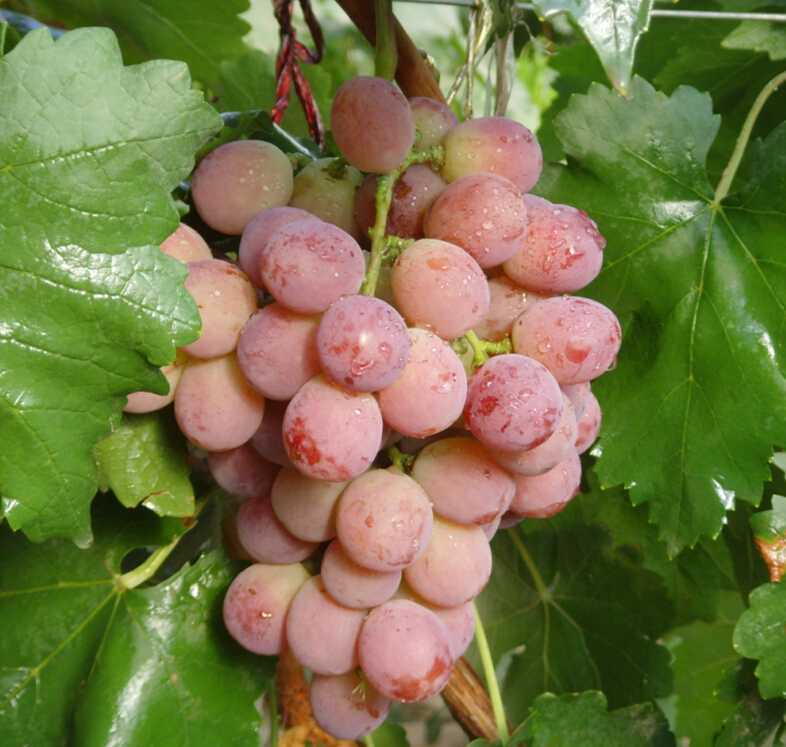失富羅莎:別名早紅提,由日本引進(jìn)。平均穗質(zhì)量650g,果實(shí)長(cháng)橢圓形,平均粒質(zhì)量912g,果皮紅色或紫紅色,果肉較軟多汁,味甜,含糖17%~18%,不易脫粒。