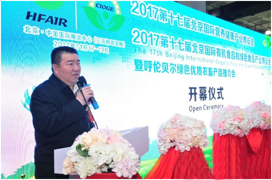 11月17日,2017第十七屆北京國際有機食品和綠色食品產(chǎn)業(yè)博覽會(huì )暨呼倫貝爾綠色優(yōu)質(zhì)農畜產(chǎn)品推介會(huì )在北京·中國國際展覽中心盛大開(kāi)幕。農業(yè)部原副部長(cháng)、中紀委駐農業(yè)部紀檢組原組長(cháng)宋樹(shù)友、中國綠色食品發(fā)展中心主任王運浩、國家發(fā)改委農經(jīng)司原司長(cháng)高俊才、內蒙古自治區農牧業(yè)廳副巡視員王炎等領(lǐng)導、嘉賓及企業(yè)代表出席大會(huì )開(kāi)幕儀式并巡視參觀(guān)呼倫貝爾展廳。呼倫貝爾市委副書(shū)記姜宏、市政府副市長(cháng)任宇江出席開(kāi)幕式并為大會(huì )剪彩,任宇江在開(kāi)幕式上致辭。內蒙古農牧業(yè)產(chǎn)業(yè)化龍頭企業(yè)協(xié)會(huì )執行會(huì )長(cháng)林永亮應邀參加會(huì )議。