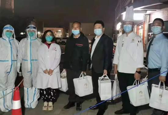 內蒙古女神餐飲娛樂(lè )有限公司黨組織繼24、25日為參與社區核酸檢測的一線(xiàn)工作人員送愛(ài)心餐后,10月29日女神餐飲東河灣店和會(huì )展店繼續為國家和自治區疫情防控專(zhuān)家醫療團隊工作人員配餐;女神金藍港店停車(chē)場(chǎng)被光明路辦事處果園社區設為核酸檢測點(diǎn),酒店為一線(xiàn)工作人員配餐,酒店員工當志愿者幫助開(kāi)展工作;女神錫林南路店為天驕花園核酸檢測點(diǎn)工作人員配餐;女神塞外桃園為和林格爾縣新店子鎮政府和交警隊防控工作人員送去綠色有機食材,為抗疫工作奉獻愛(ài)心貢獻力量。