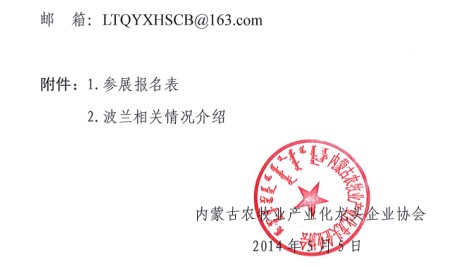 關(guān)于組織會(huì )員單位參加2014年波蘭波茲南國際食品博覽會(huì )的通知