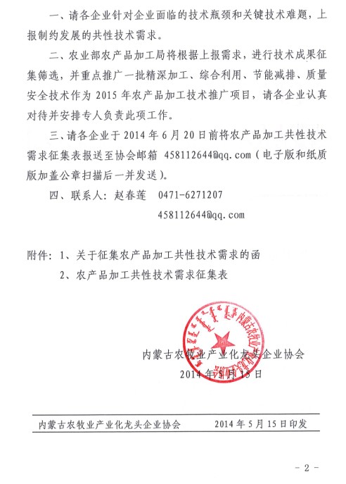 關(guān)于征集農產(chǎn)品加工共性技術(shù)需求的通知