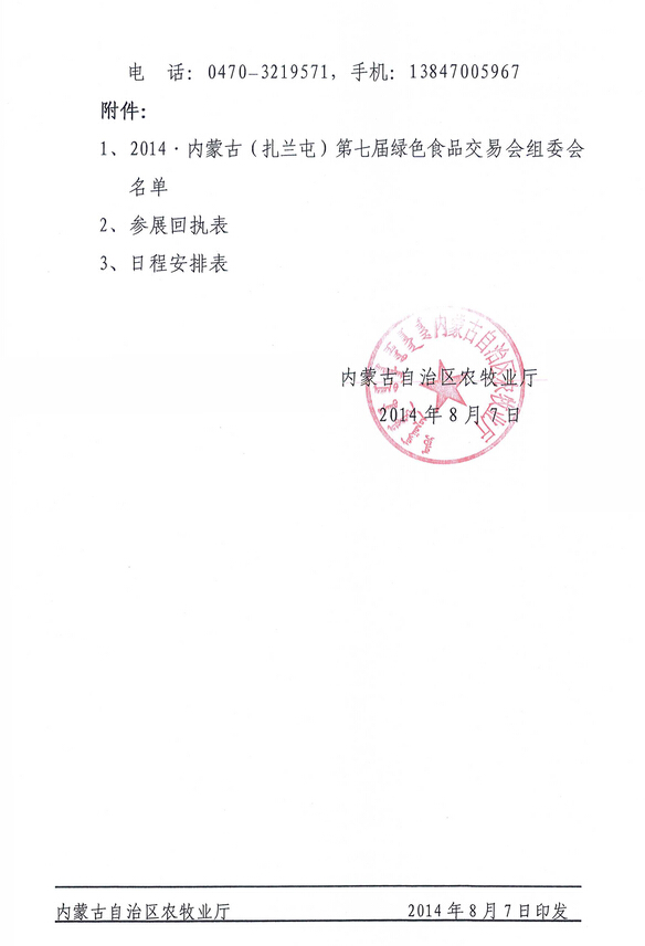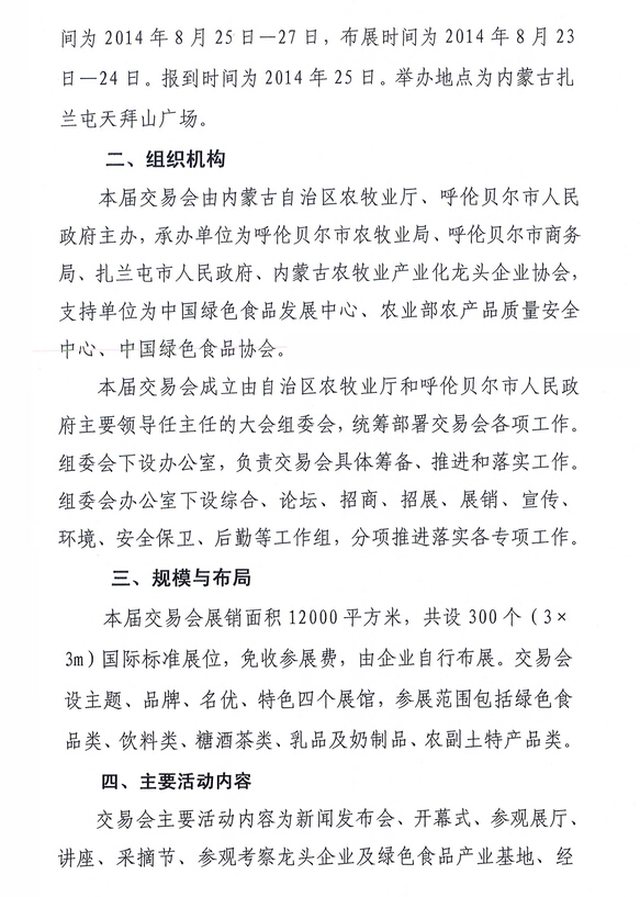 關(guān)于舉辦2014內蒙古(扎蘭屯)第七屆綠色食品交易會(huì )的通知