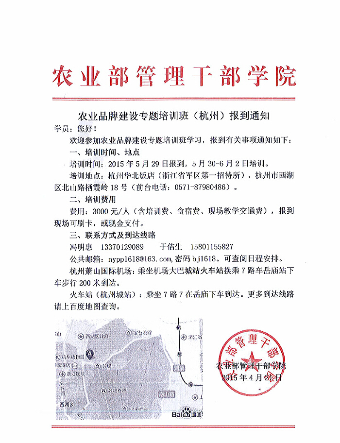 關(guān)于組織參加農業(yè)品牌建設專(zhuān)題培訓班的通知
