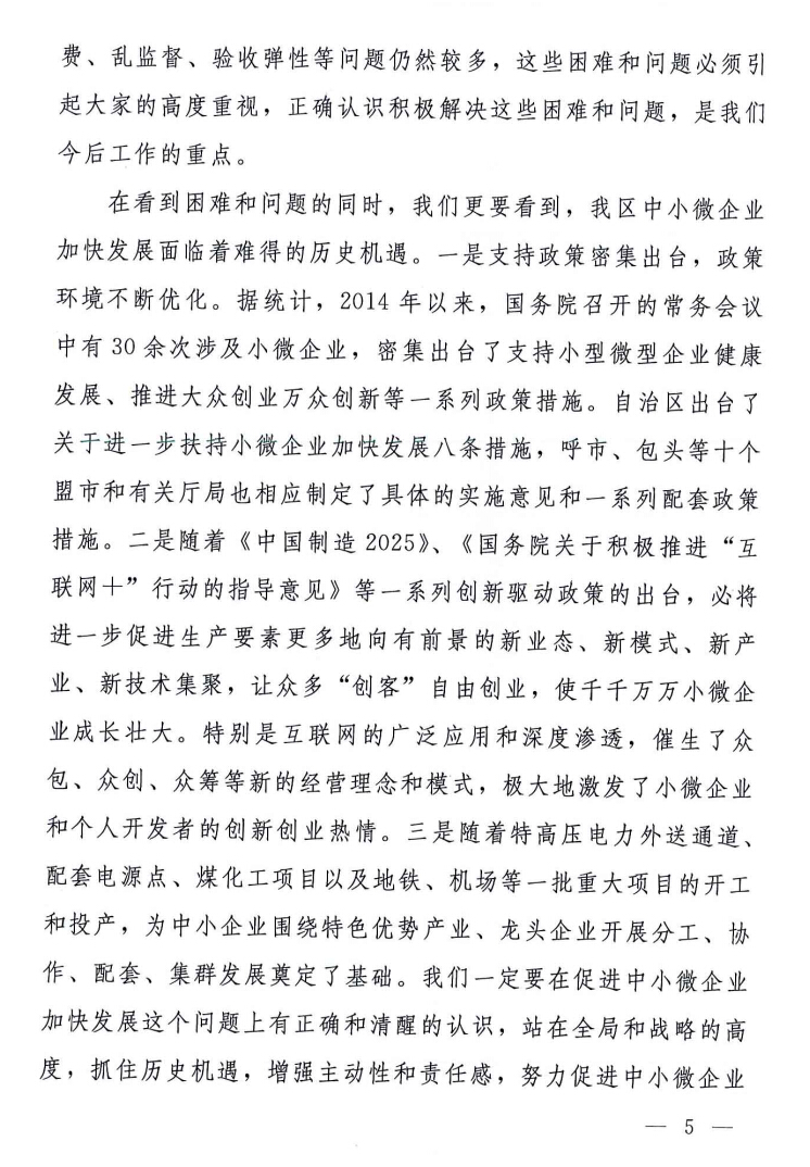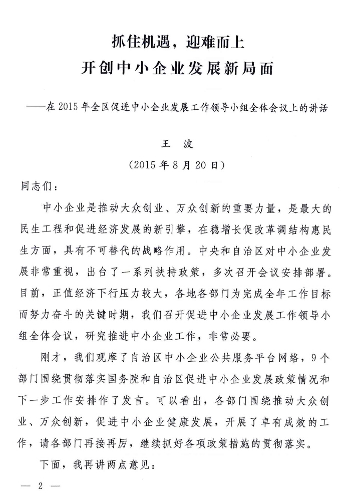 轉發(fā):關(guān)于印發(fā)王波副主席在2015年自治區促進(jìn)中小企業(yè)發(fā)展工作領(lǐng)導小組全體會(huì )議上講話(huà)的通知