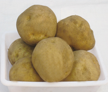 出苗后90—100天收獲,且適于炸片的中熟品種,塊莖圓形或短橢圓形,結薯集中,薯皮黃褐色,粗糙有網(wǎng)紋,薯肉白色,芽眼淺而少,該品種也適用于全粉加工,不耐干旱高溫,在干旱條件下,塊莖內部容易產(chǎn)生褐色斑點(diǎn),塊莖過(guò)大易產(chǎn)生空芯,影響其品質(zhì),應適當密植,畝株數應保持4500株—5000株,同時(shí)應注意防晚疫病。