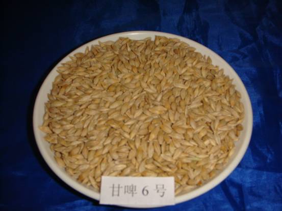 甘啤6號大麥屬二棱皮大麥,春性,生育期102天,中熟。幼苗半匍匐,莖稈彈性好,均勻株高80厘米。葉片開(kāi)張角度大,冠層透光好,抽穗時(shí)株型松緊中等,穗全抽出,閉穎授粉,穗長(cháng)方形。灌漿后期穗軸略有彎曲,穗層整潔,均勻穗長(cháng)8.0厘米,穗莖節26.5厘米。疏穗型,單株有效分蘗2.5個(gè),長(cháng)芒,黃色鋸齒。穗粒數23粒左右,千粒重4550克,蛋白質(zhì)含量8.710.5%,選粒率(2.5毫米)8593.0%。粒色淡黃,種皮薄,粒徑大,皺紋細膩,籽粒卵形,粉質(zhì);抗倒伏,抗干熱風(fēng),抗條紋病和其它大麥病害。