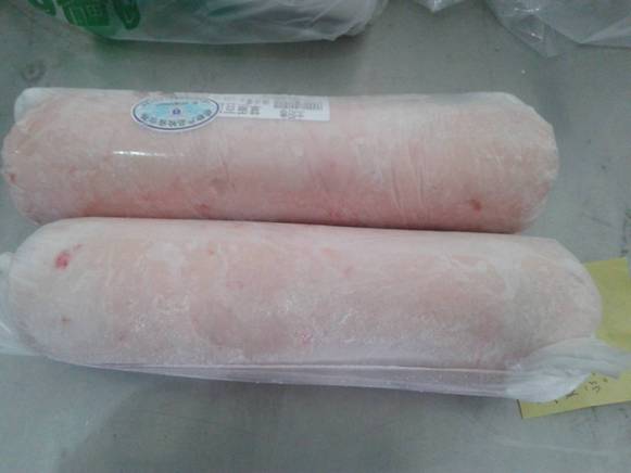 用排酸后的羔羊肉卷成圓柱狀,稱(chēng)之為羔羊肉卷。做成長(cháng)方形